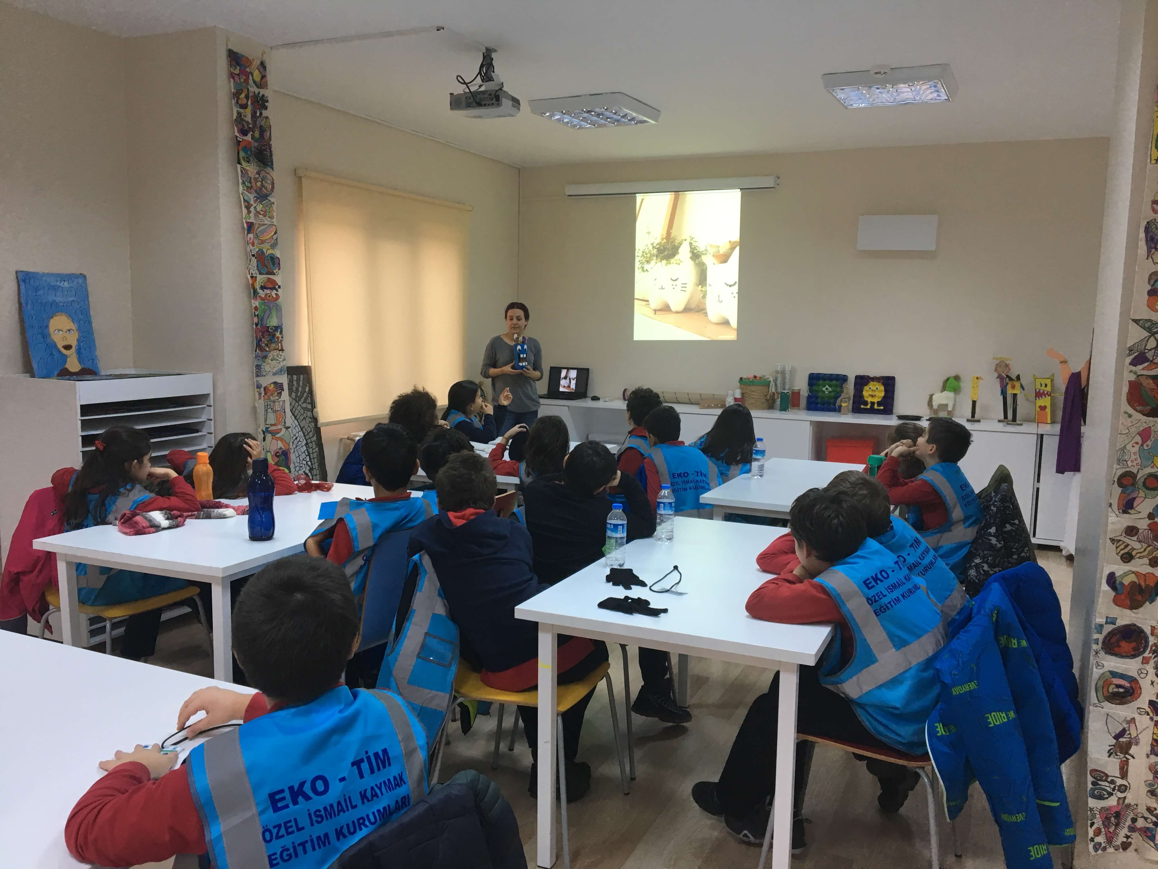 Çalışmalarında geri dönüşümü hayata geçirmeyi, doğayı koruma algısını geliştirmeyi, tüketim toplumundan üretim toplumuna geçişi desteklemeyi hedefleyen Çanakkale Belediyesi Çocuk Kültür Evi Enerji Tasarrufu Haftası'nda İsmail Kaymak Koleji Eko Tim öğrencilerini konuk etti.