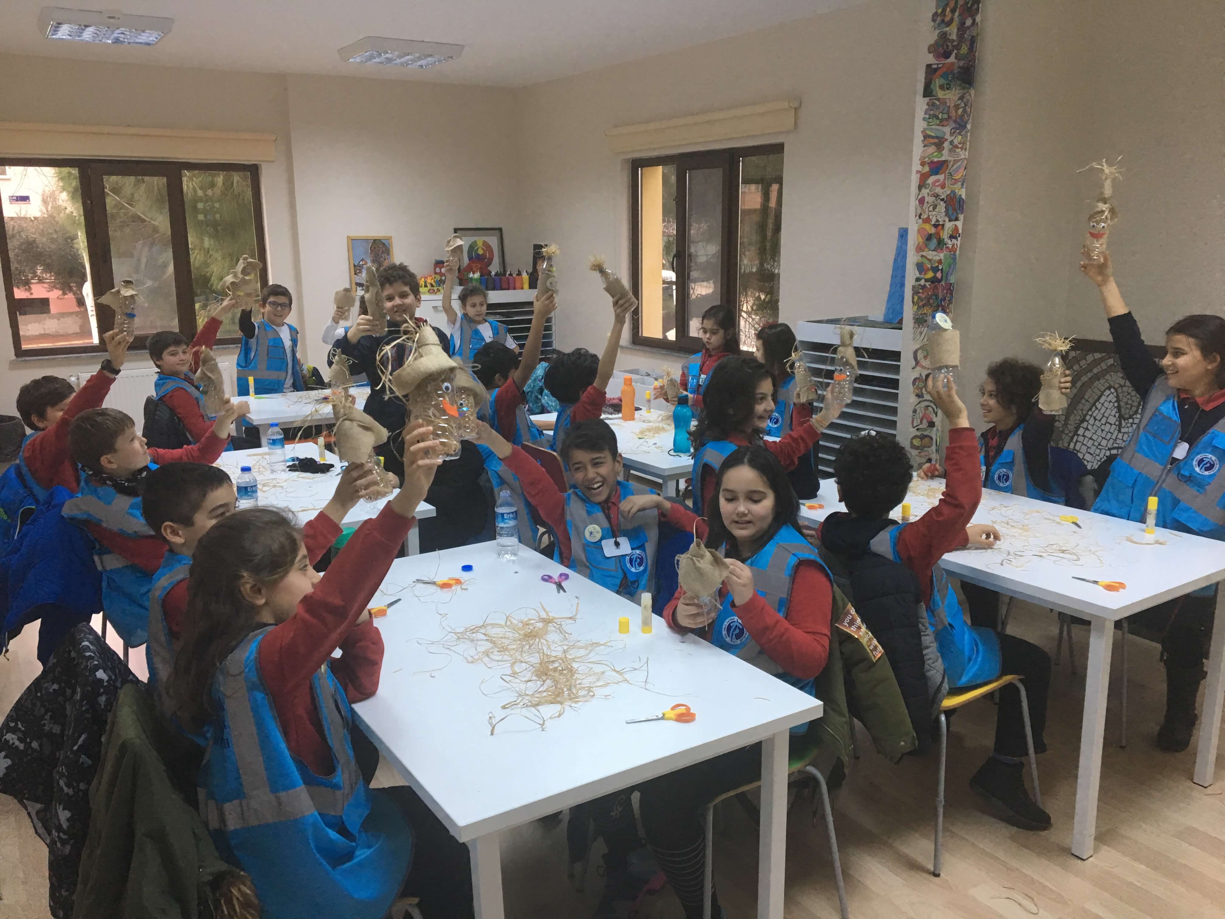 Çocuklarla geri dönüşüm, ileri dönüşüm, tüketim kültürü, enerji tasarrufu çerçevesinde bir sohbet gerçekleştiren Çocuk Kültür Evi eğitmenleri soru cevap şeklinde sonlanan sohbetin ardından bir ileri dönüşüm sanat atölyesi gerçekleştirdi. Oldukça keyifli geçen atölye toplu fotoğraf çekimi ile sona erdi.