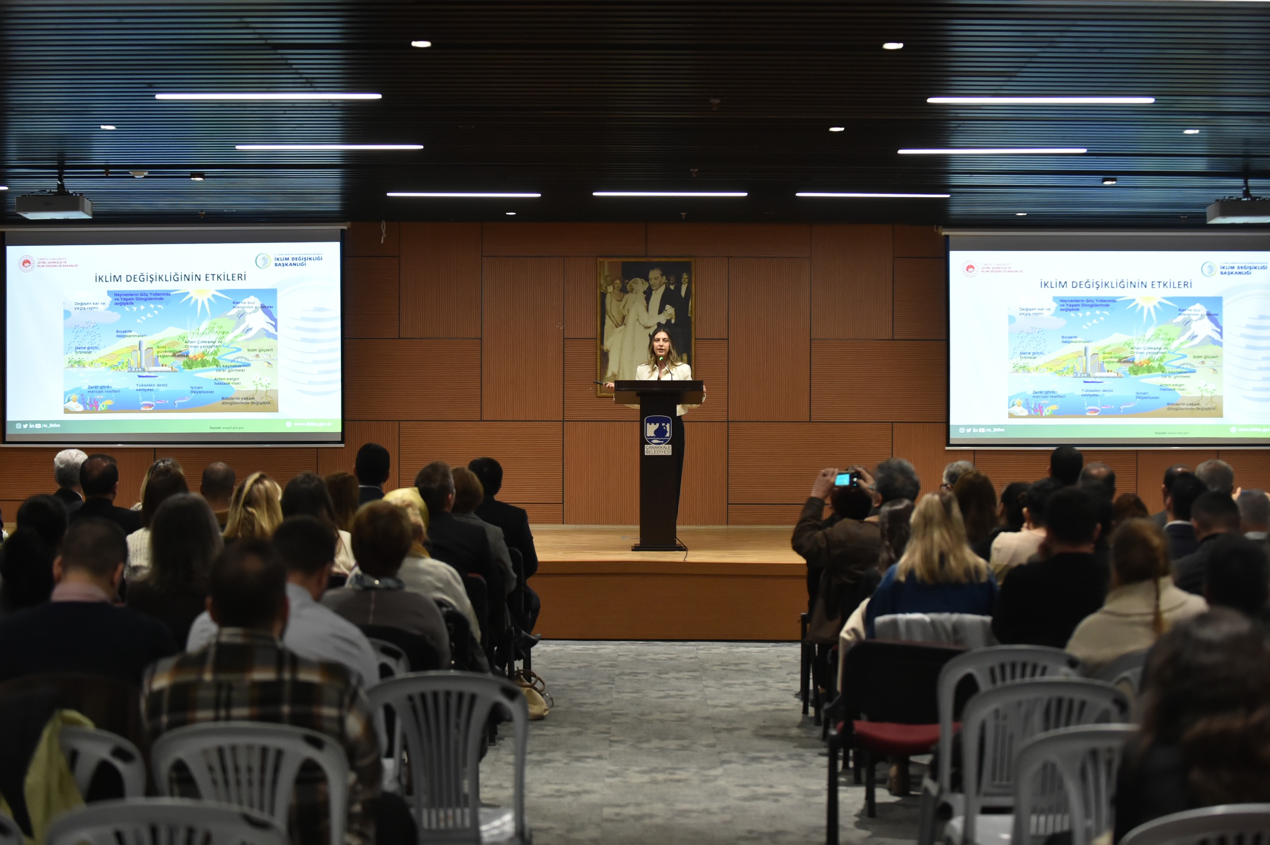 Başkan Erkek'in ardından sırasıyla Çevre Şehircilik ve İklim Değişikliği Bakanlığı İklim Değişikliği Uzmanı Neslihan Ağartan,TÜBİTAK MAM İklim ve Yaşam Bilimleri Başkan Yardımcılığı Kıdemli Uzman Araştırmacı Dr. Tuğba Doğan Güzel ve Belediye İklim Değişikliği ve Sıfır Atık Müdürü Aysun Kavcar sunumlarını gerçekleştirdi.