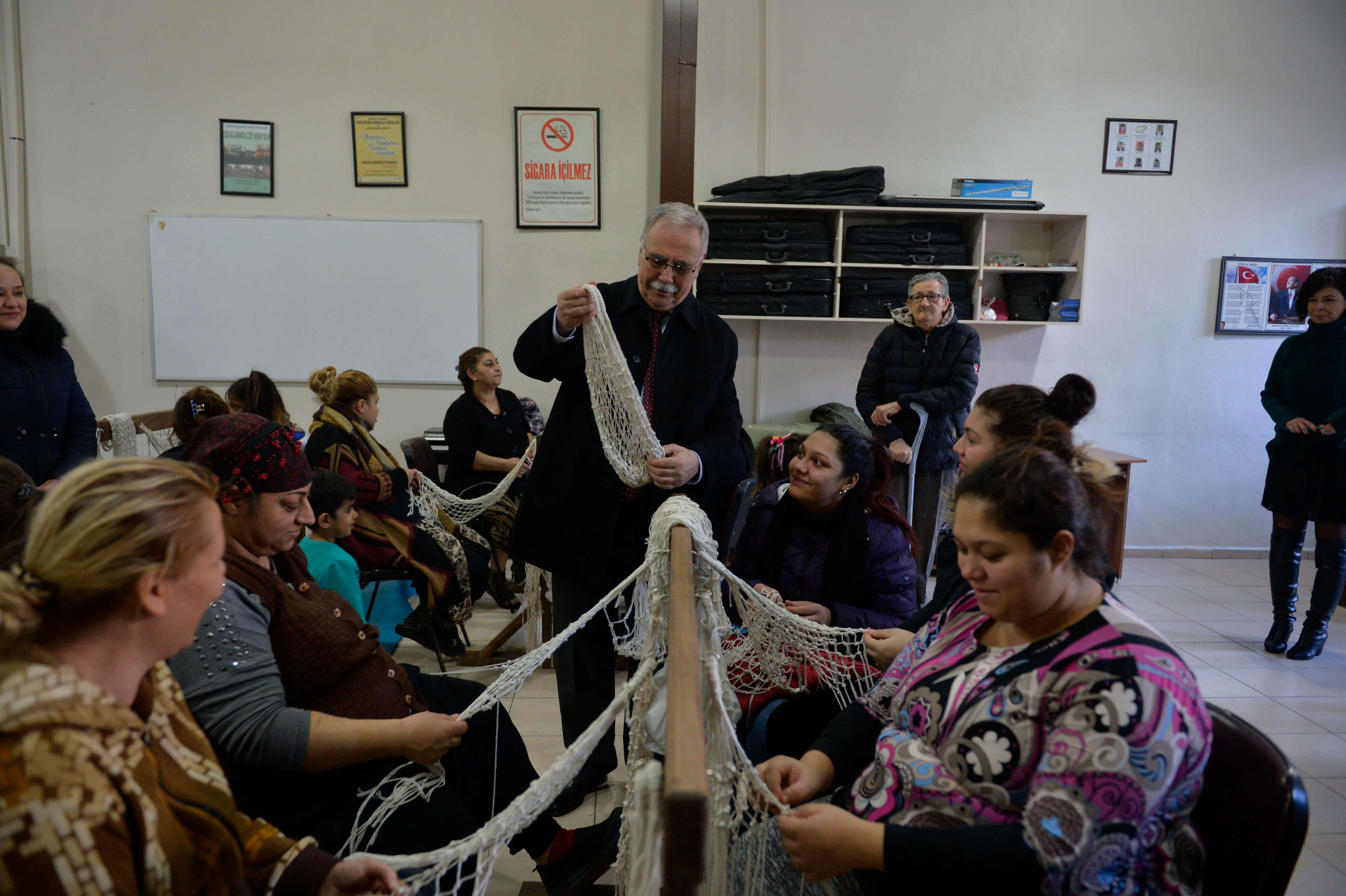 Belediye Başkanı Ülgür Gökhan Fevzipaşa Mahalle Meclisini ziyaret ederek, burada el emeği örgü file üretimi yapan kadınlar ile bir araya geldi. File çalışmalarını yerinde inceleyen Başkan Gökhan, kadınlar ile sohbet ederken, örgü file eğitmeni Osman Hikmet Türen'den de çalışmalar hakkında bilgi aldı.