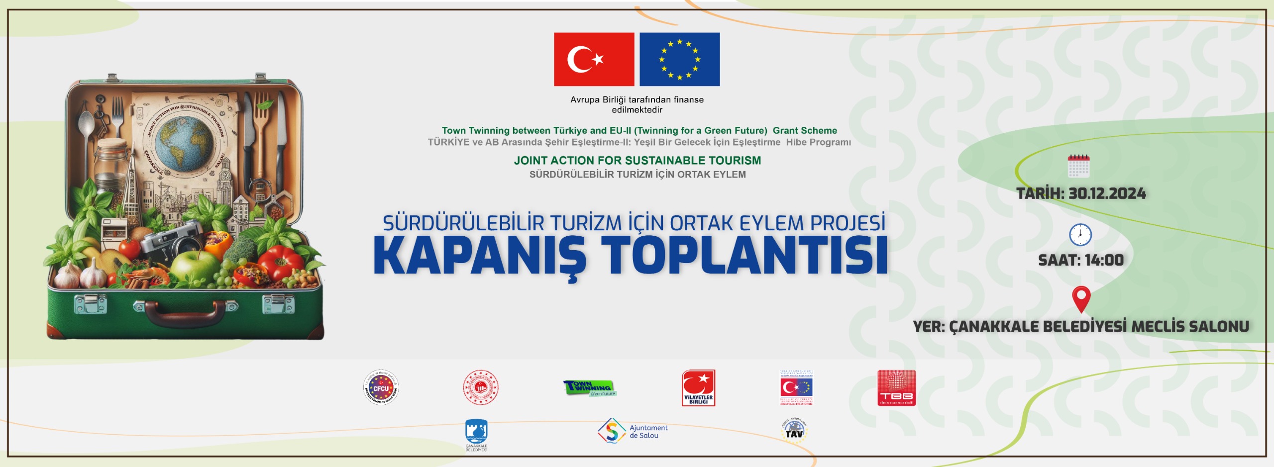 Çanakkale Belediyesi tarafından yürütülen, Türkiye Avrupa Vakfı ve İspanya Salou Belediyesi ortaklığında gerçekleştirilen Sürdürülebilir Turizm için Ortak Eylem Projesi’nin kapanış toplantısı 30 Aralık 2024 Pazartesi günü gerçekleşecek.
