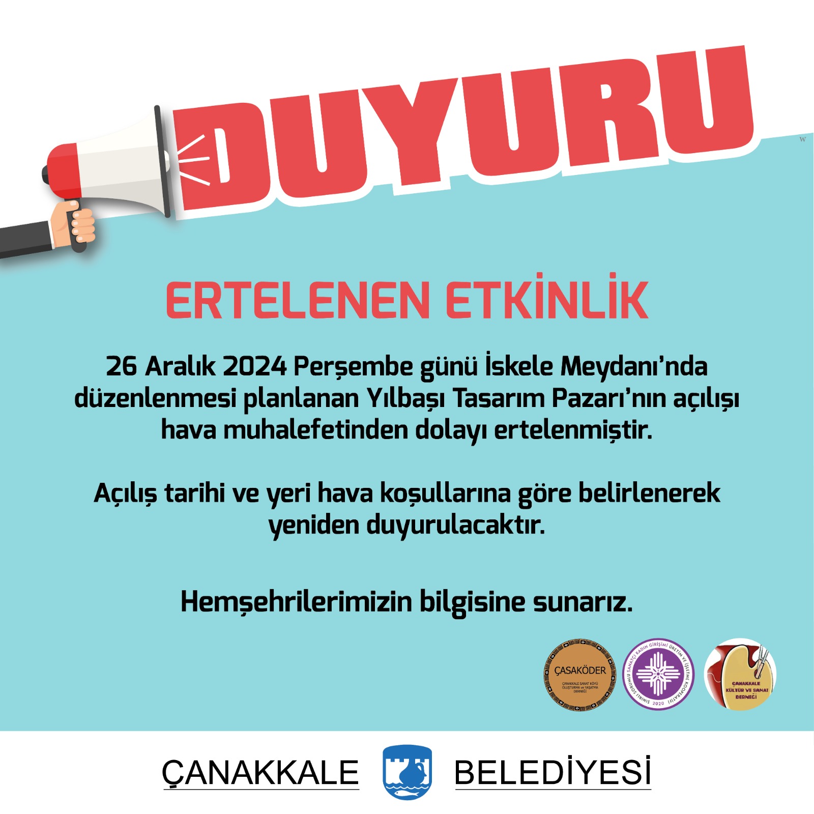 26 Aralık 2024 Perşembe günü İskele Meydanı'nda düzenlenmesi planlanan