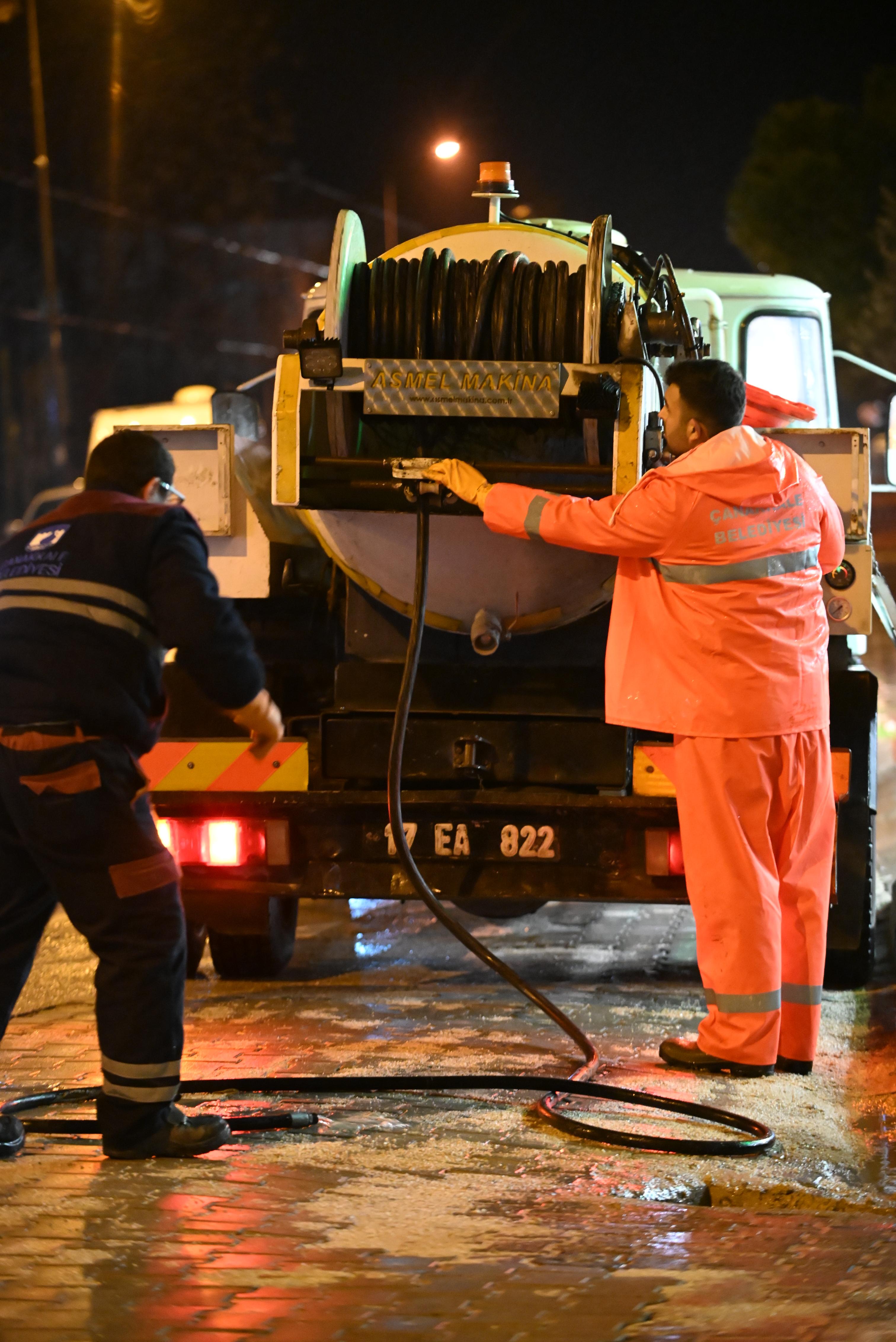 Son günlerde kuvvetli yağışlar ve rüzgarın etkisi altında olan Çanakkale için yapılan meteorolojik uyarılar kapsamında, hazırlıklarını yağışlar öncesinde tamamlayan Çanakkale Belediyesi Su ve Kanalizasyon Müdürlüğü ekipleri, akşam saatlerinde başlayan ve gece boyu aralıklarla kuvvetli şekilde etkisini sürdüren yağışlar boyunca da sahadaydı. Ekipler, kuvvetli yağışların kentte bir olumsuzluk yaratmaması adına yoğun bir emek gösterdi.