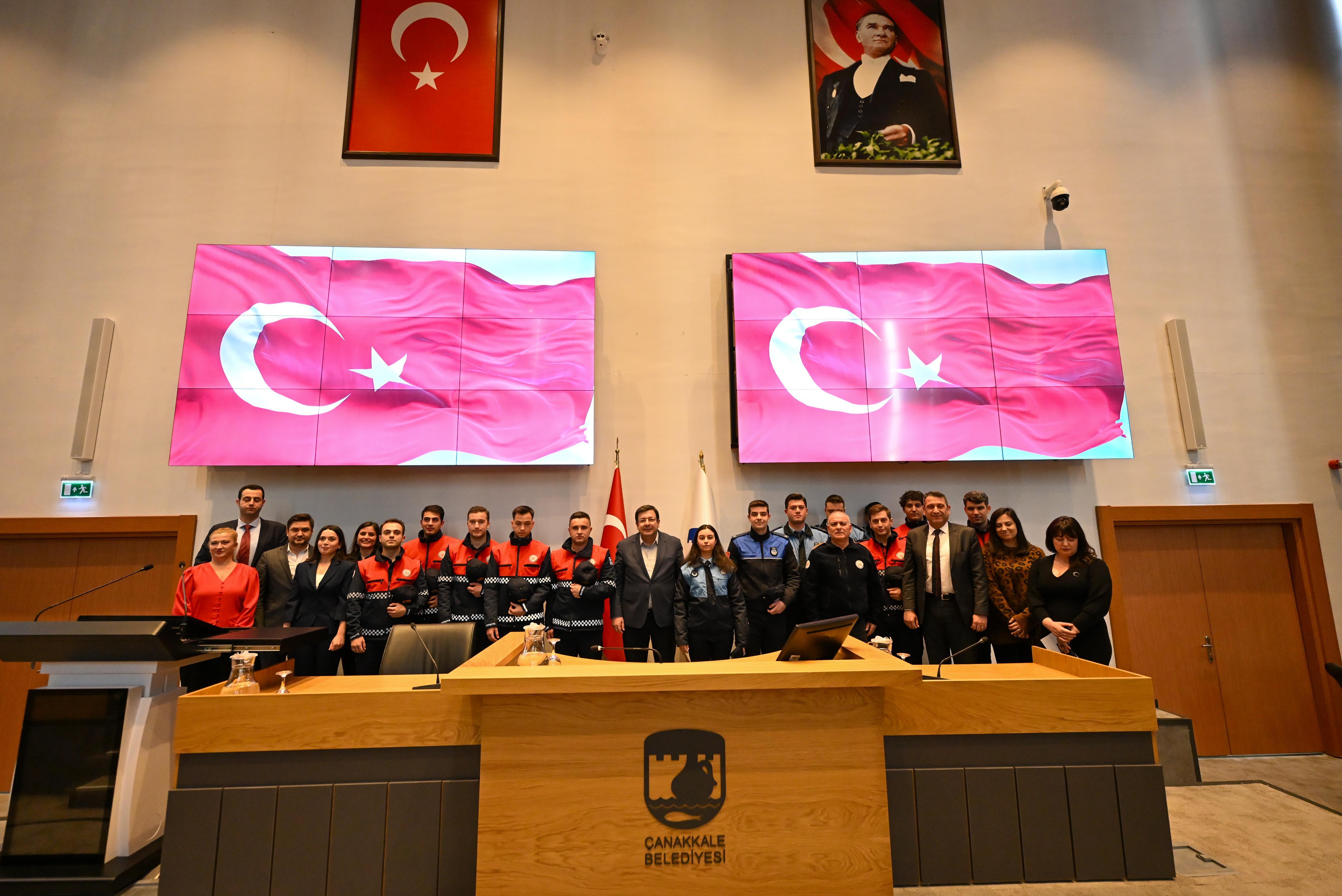 Çanakkale Belediyesi'nde aday memur olarak işe başlayan 8 İtfaiye, 5 Zabıta ve 1 Mali Hizmetler Uzman Yardımcısı olmak üzere toplamda 14 personel 18 Şubat 2025 Salı günü düzenlenen yemin töreni ile asaletlerini aldı.