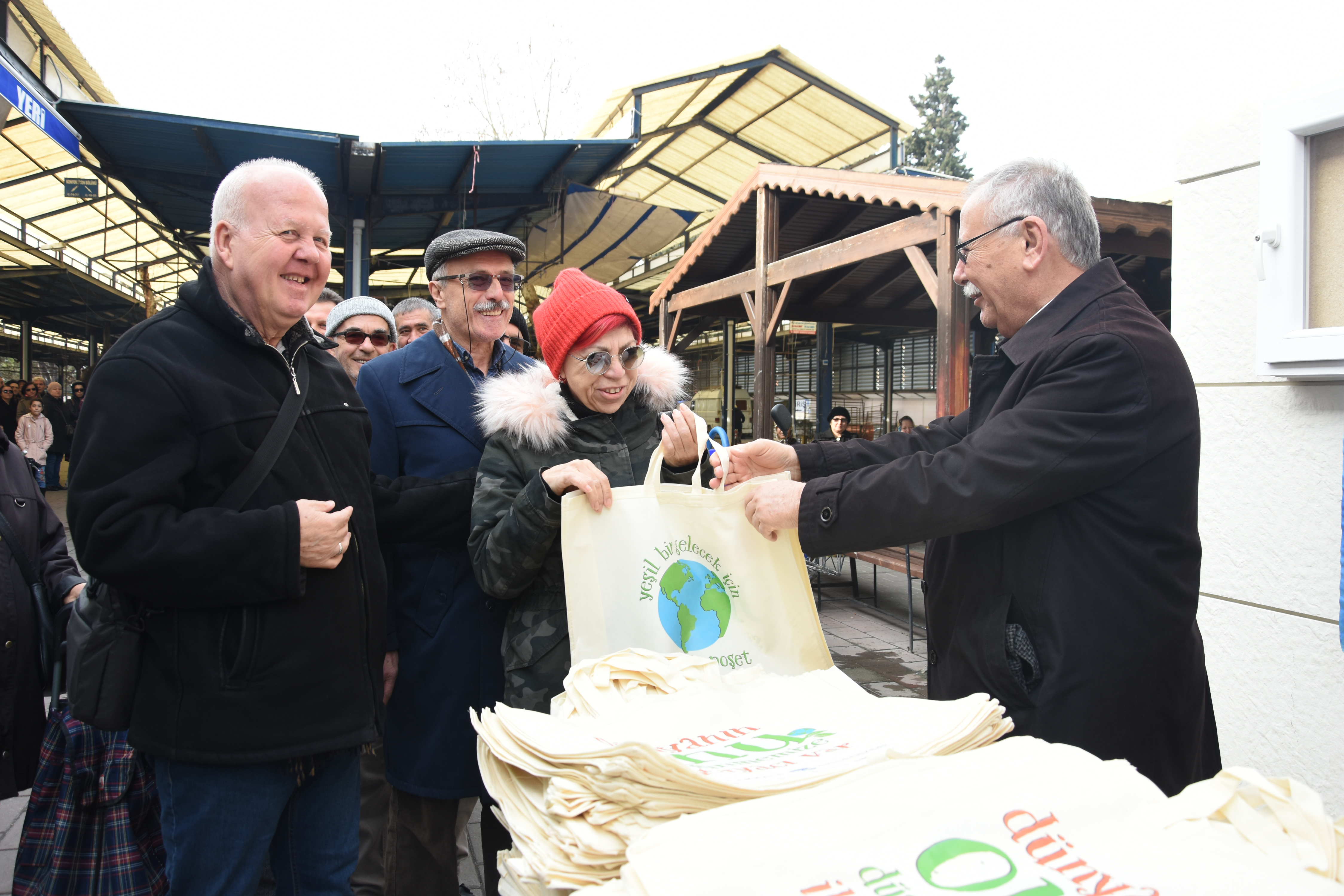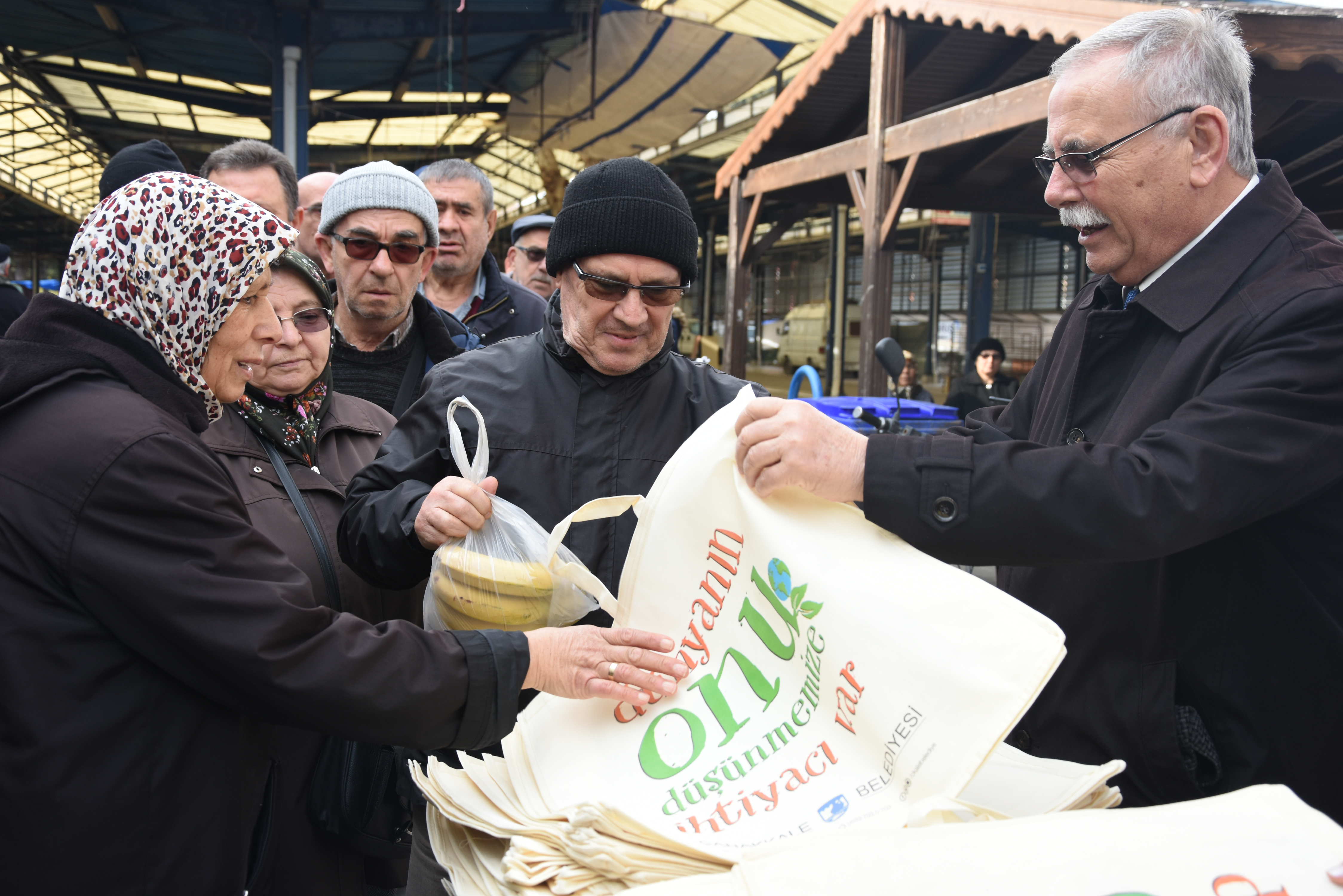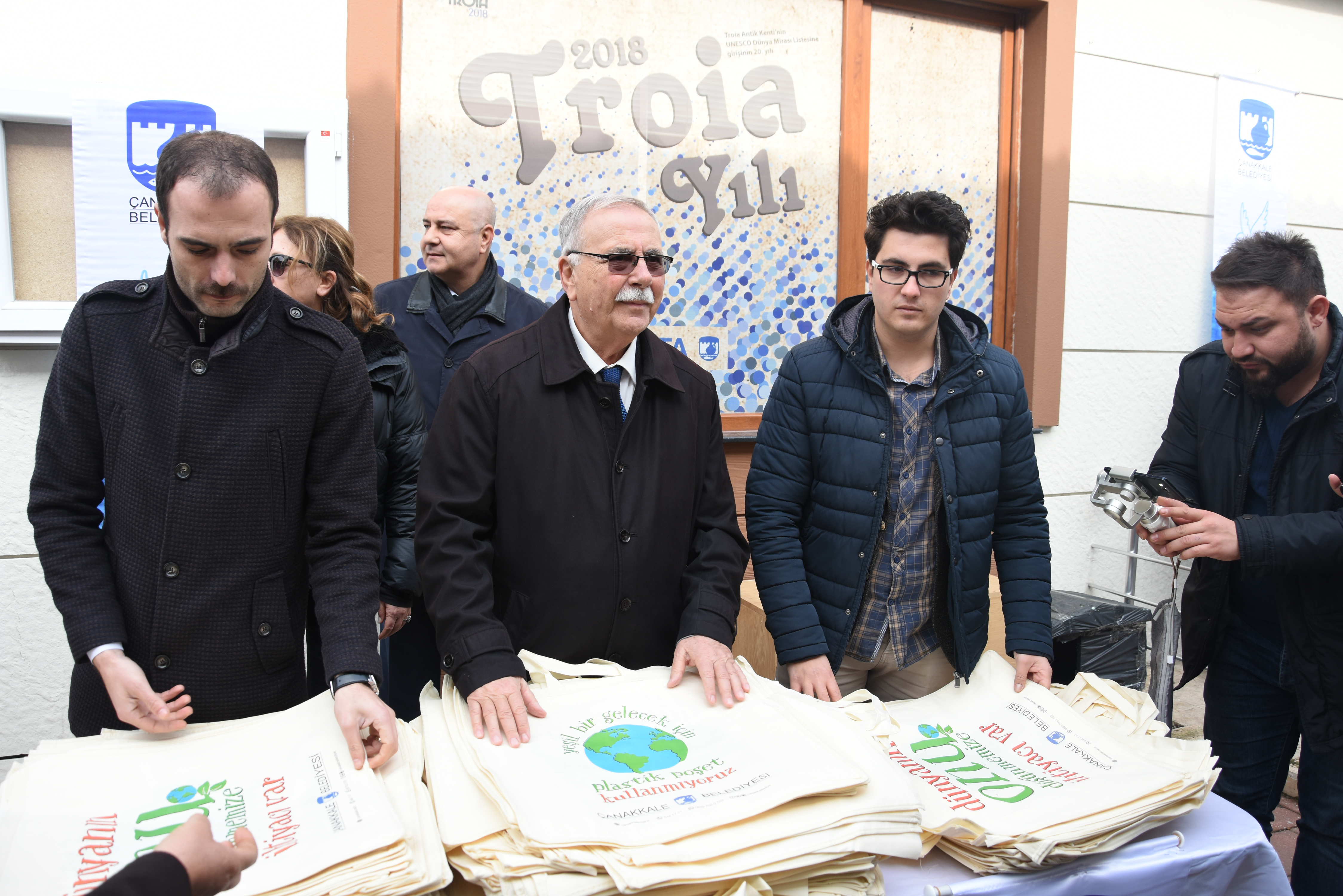 Çanakkale Belediyesi tarafından çevre ve doğaya saygı kapsamında plastik poşetlerin kullanımını en aza indirmeye yönelik farkındalık yaratmak amacıyla hazırlanan doğa dostu bez çantalar 22 Ocak 2019 Salı günü Pazar Yerinde kentlilere dağıtıldı.