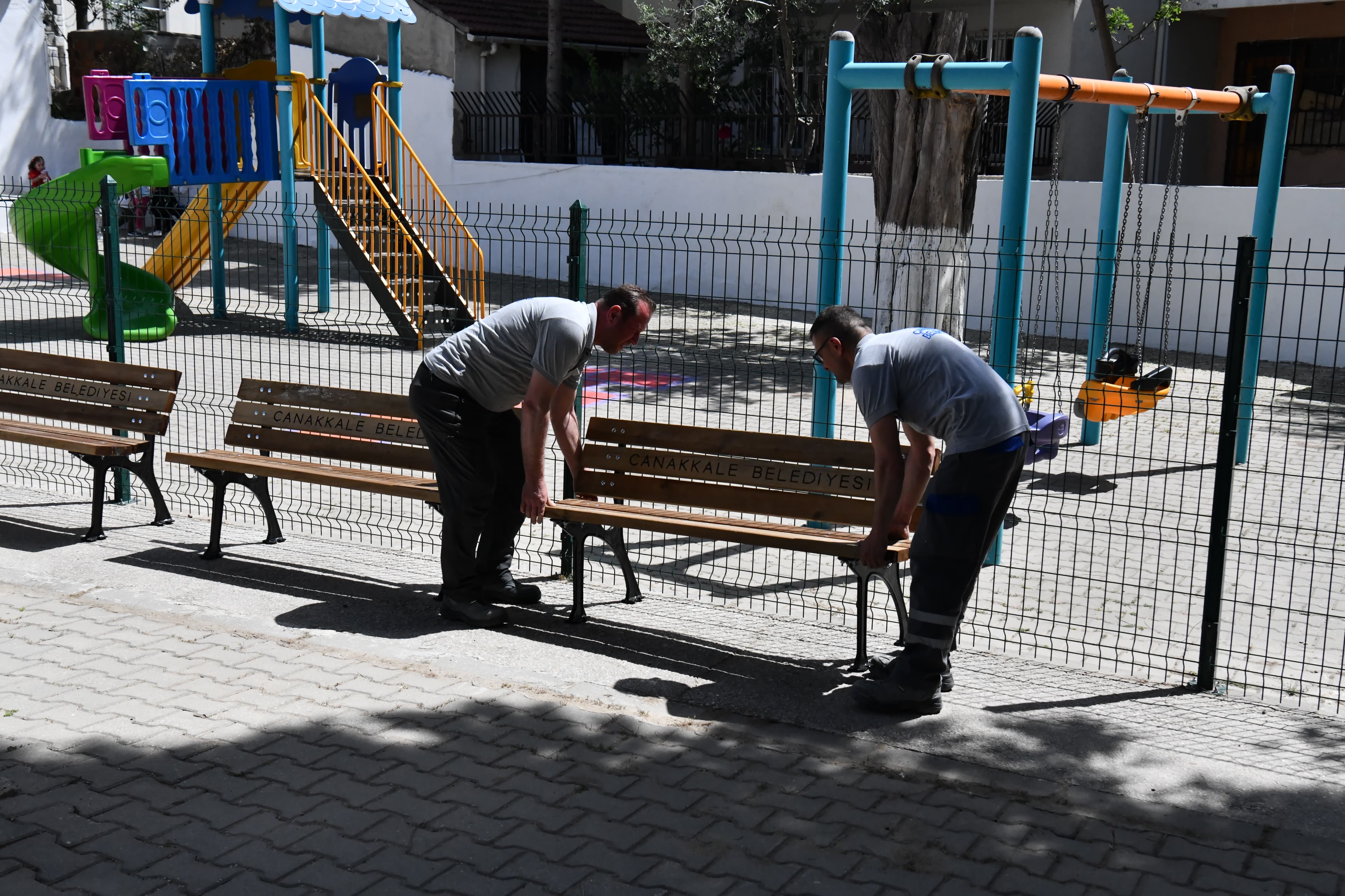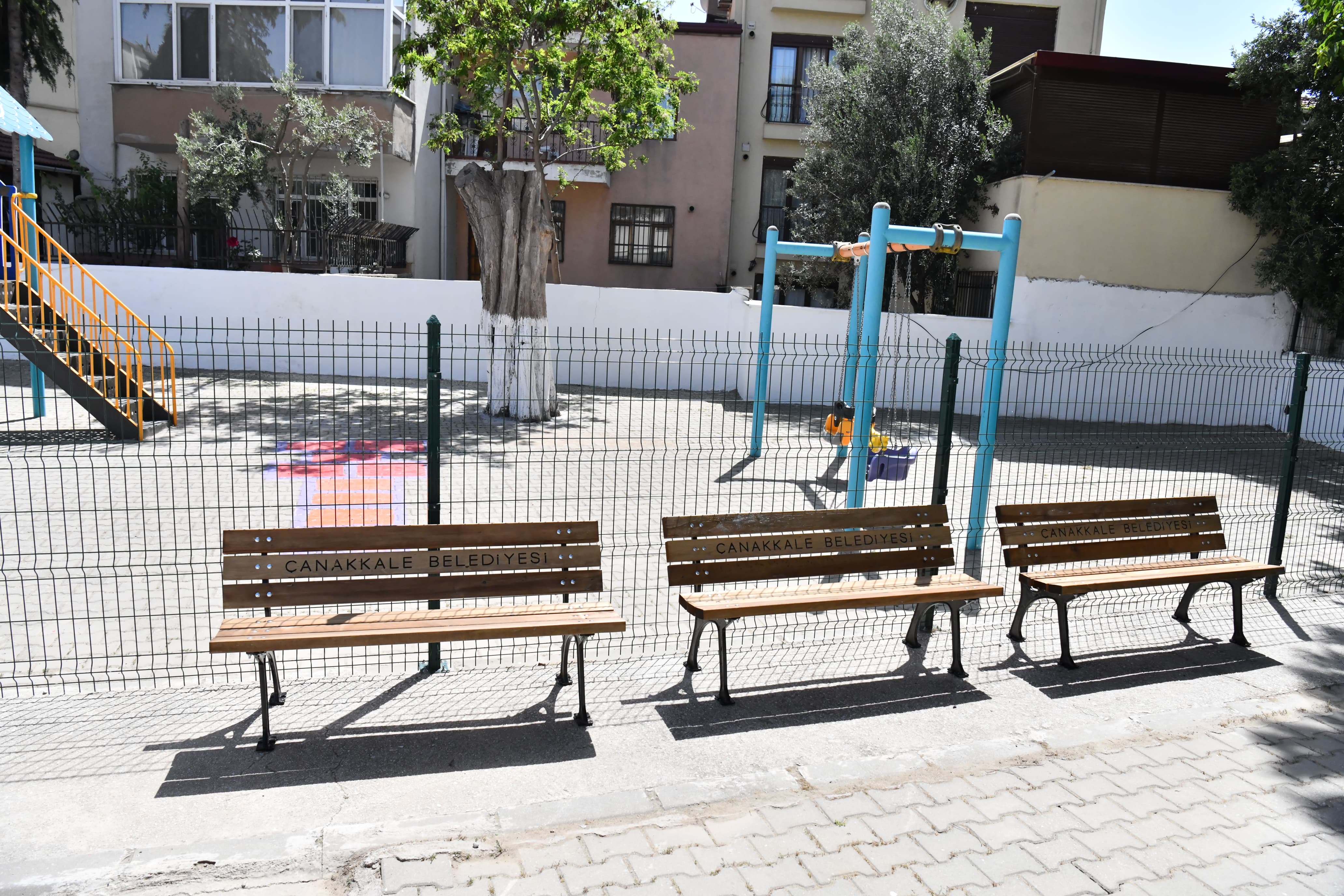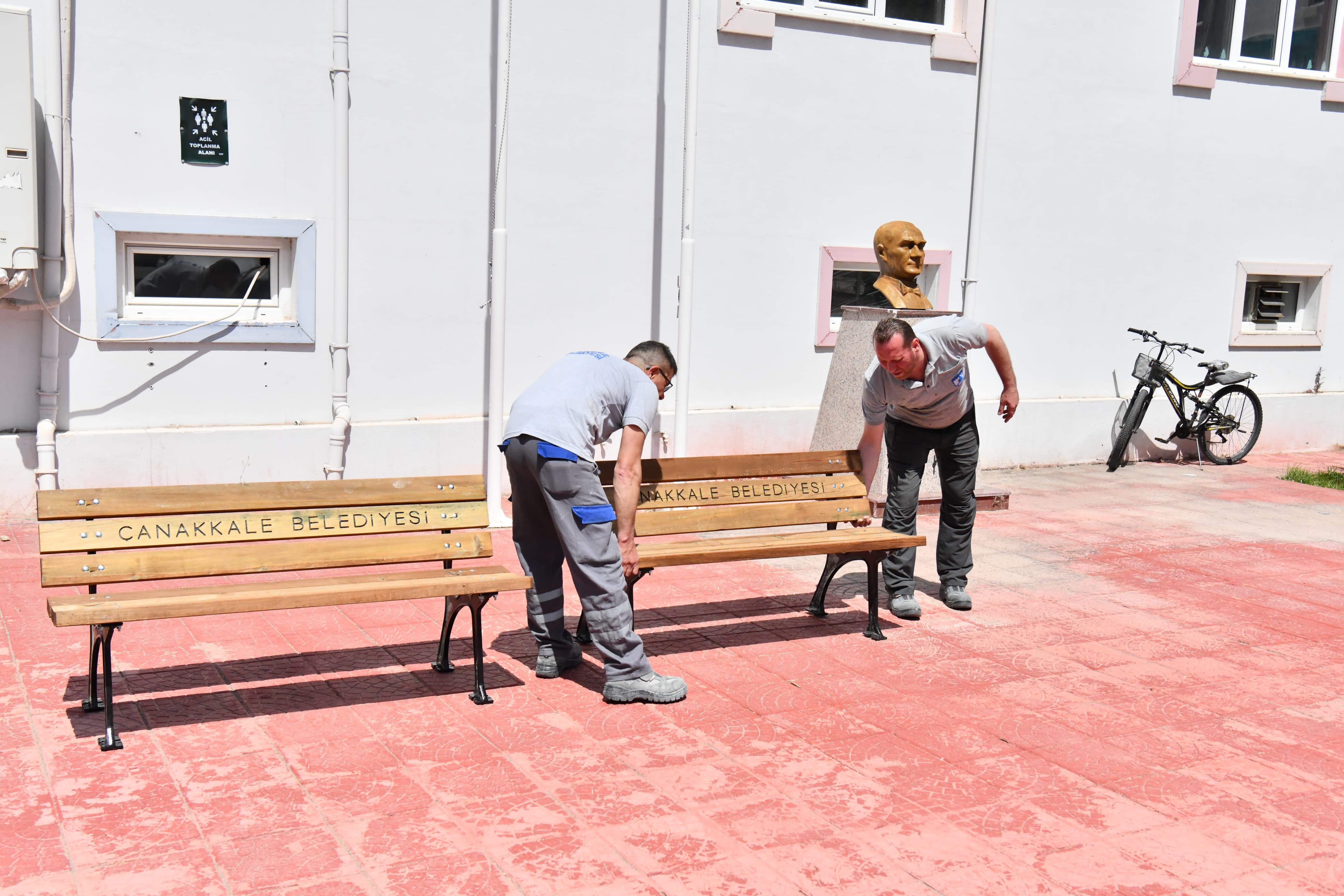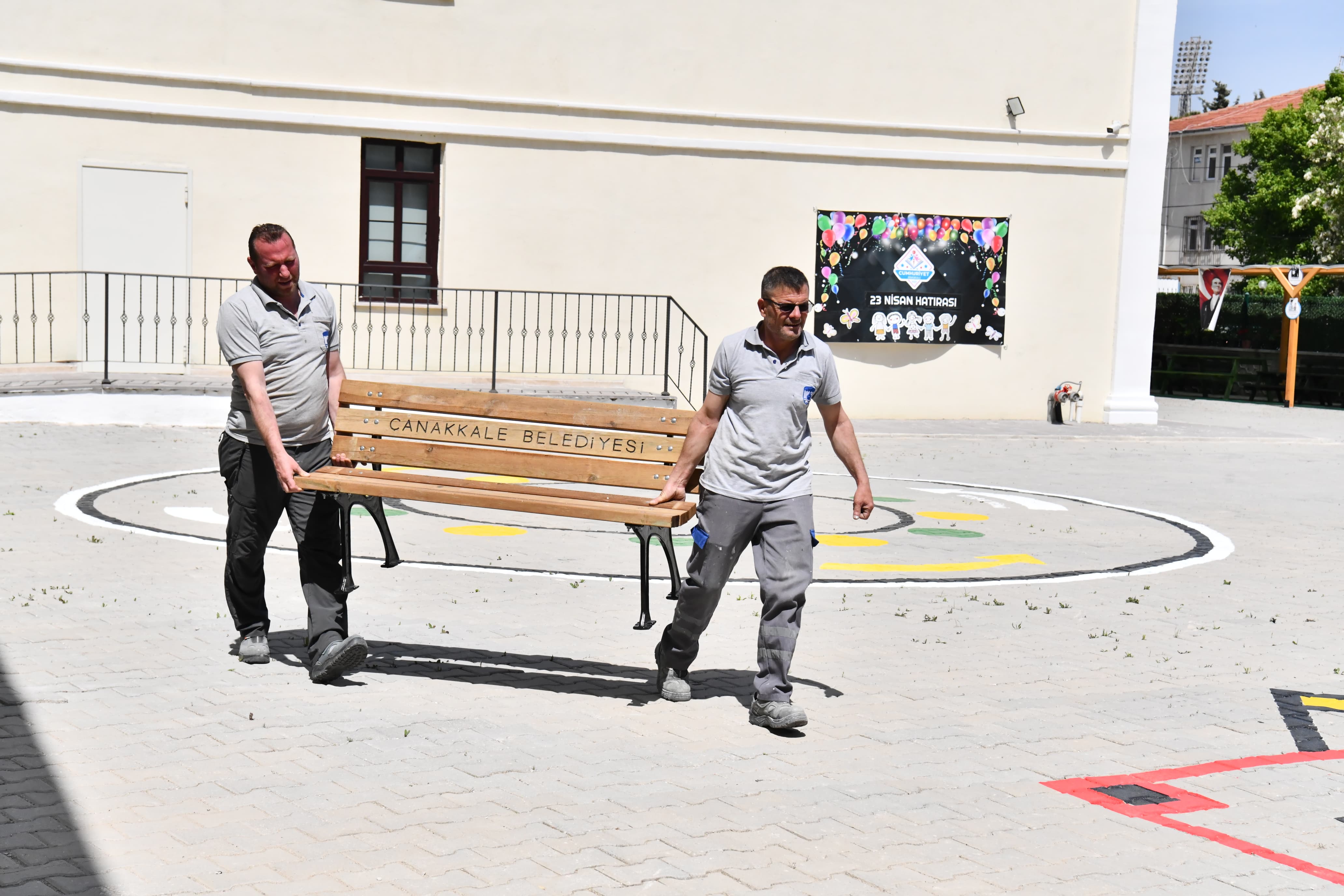 Çanakkale Belediyesi Destek Hizmetleri Müdürlüğü, okullara bank ve piknik masası desteği sağlamaya devam ediyor.