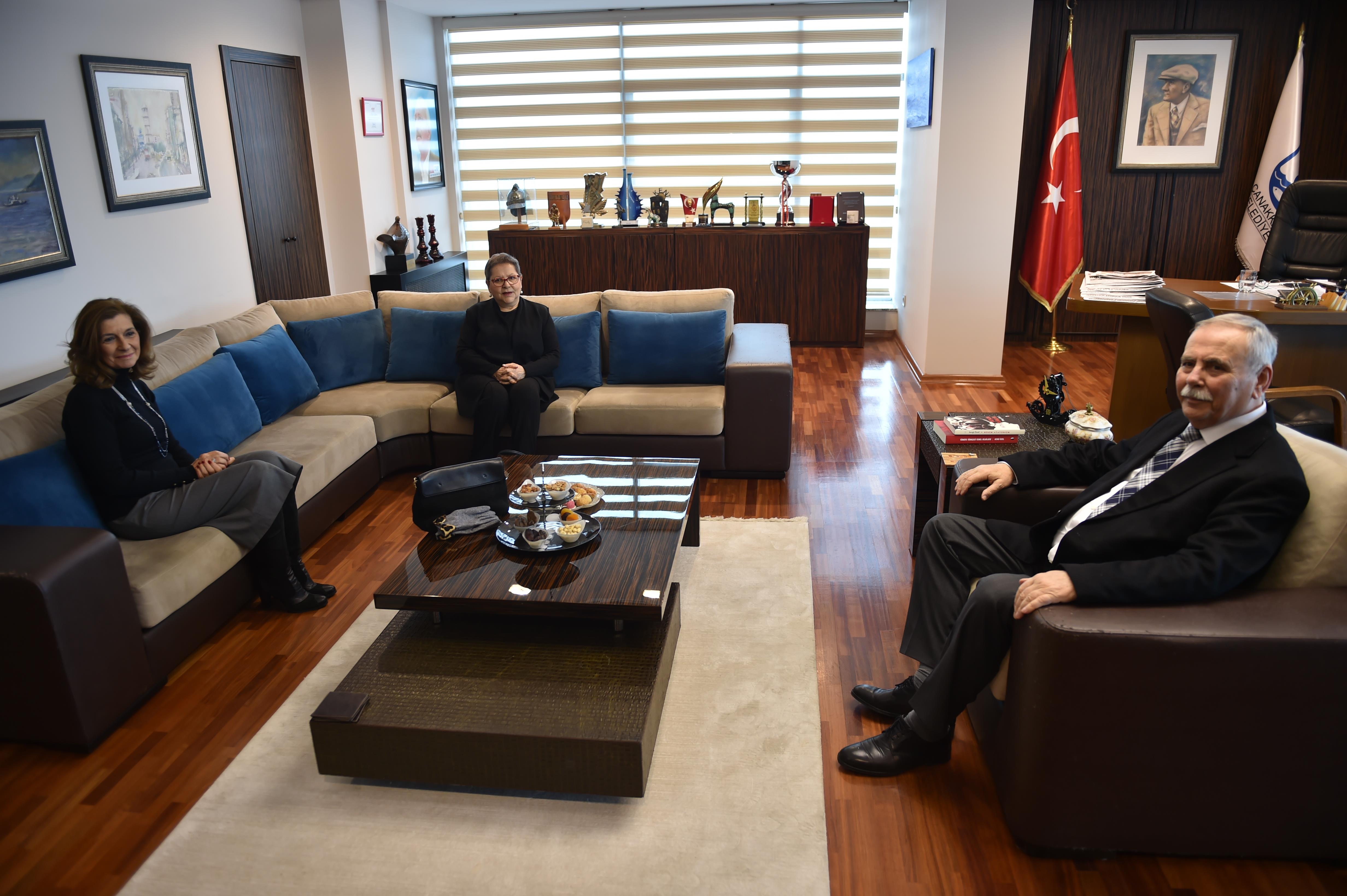 Çanakkale’de düzenlenecek olan Uğur Mumcu paneli nedeni ile kente gelen Dil Derneği Başkanı Sevgi Özel, Belediye Başkanı Ülgür Gökhan'ı ziyaret etti.