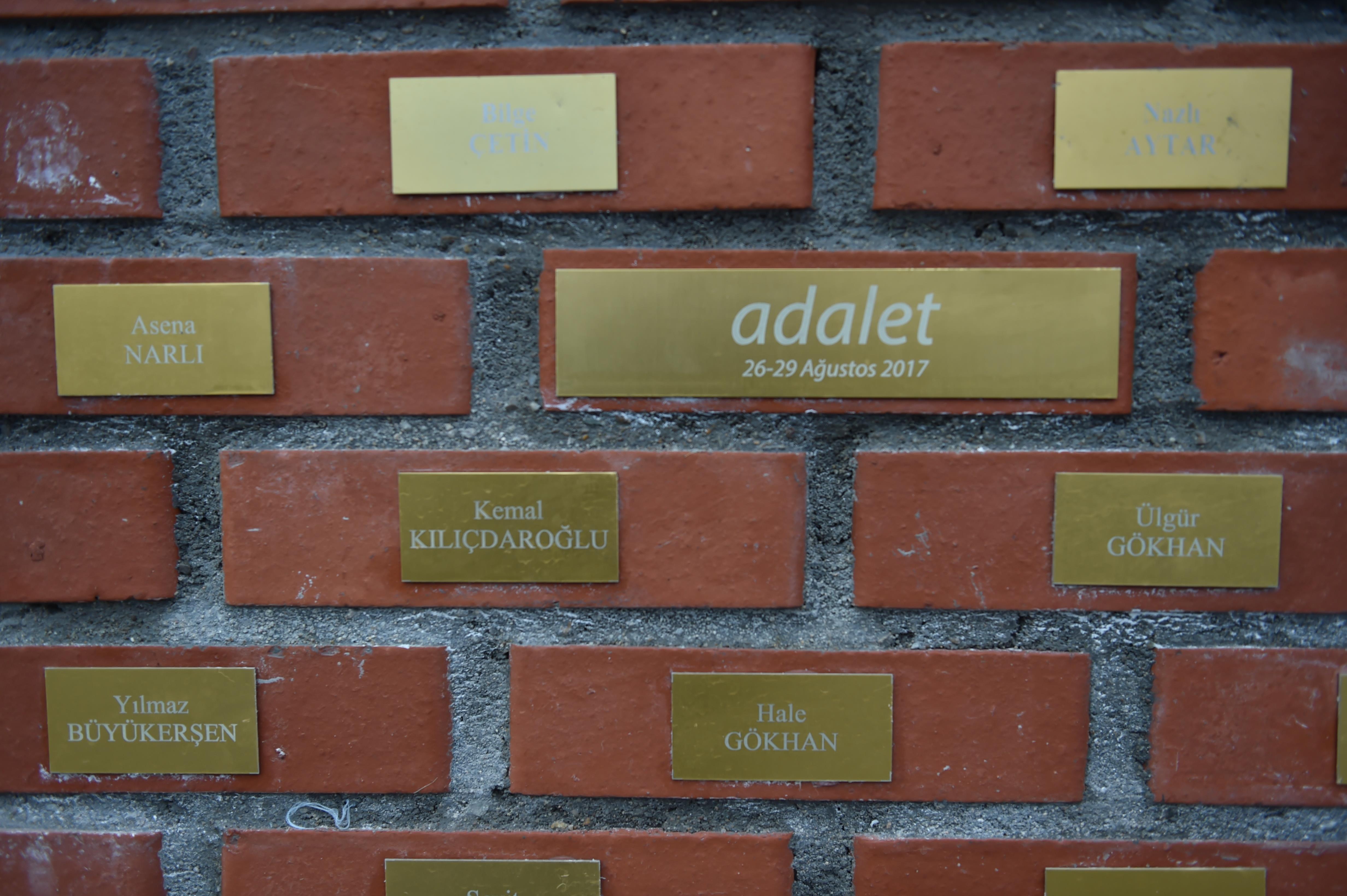 Adalet heykeli hakkında bilgi veren Başkan Gökhan; “Gördüğünüz üzere Adalet Heykeli ana yapısını tuğlaların oluşturduğu 6 adet sütundan, güneş şeklinde bir duvar kitlesinden tasarlanmıştır. Bu önemli tasarımdaki ana düşünce milletin ancak el ele bir araya gelerek adaleti yüceltebileceği düşüncesidir. Adalet Kurultayına katılanların birer taşlarının bulunduğu bu heykel ile adalet mücadelesi her daim yaşatılacaktır. Onurlu bir yaşam mücadelesinin simgesi olacak Adalet Parkı ve Adalet Heykeli'nin kentimize hayırlı ve uğurlu olmasını diliyorum” dedi.