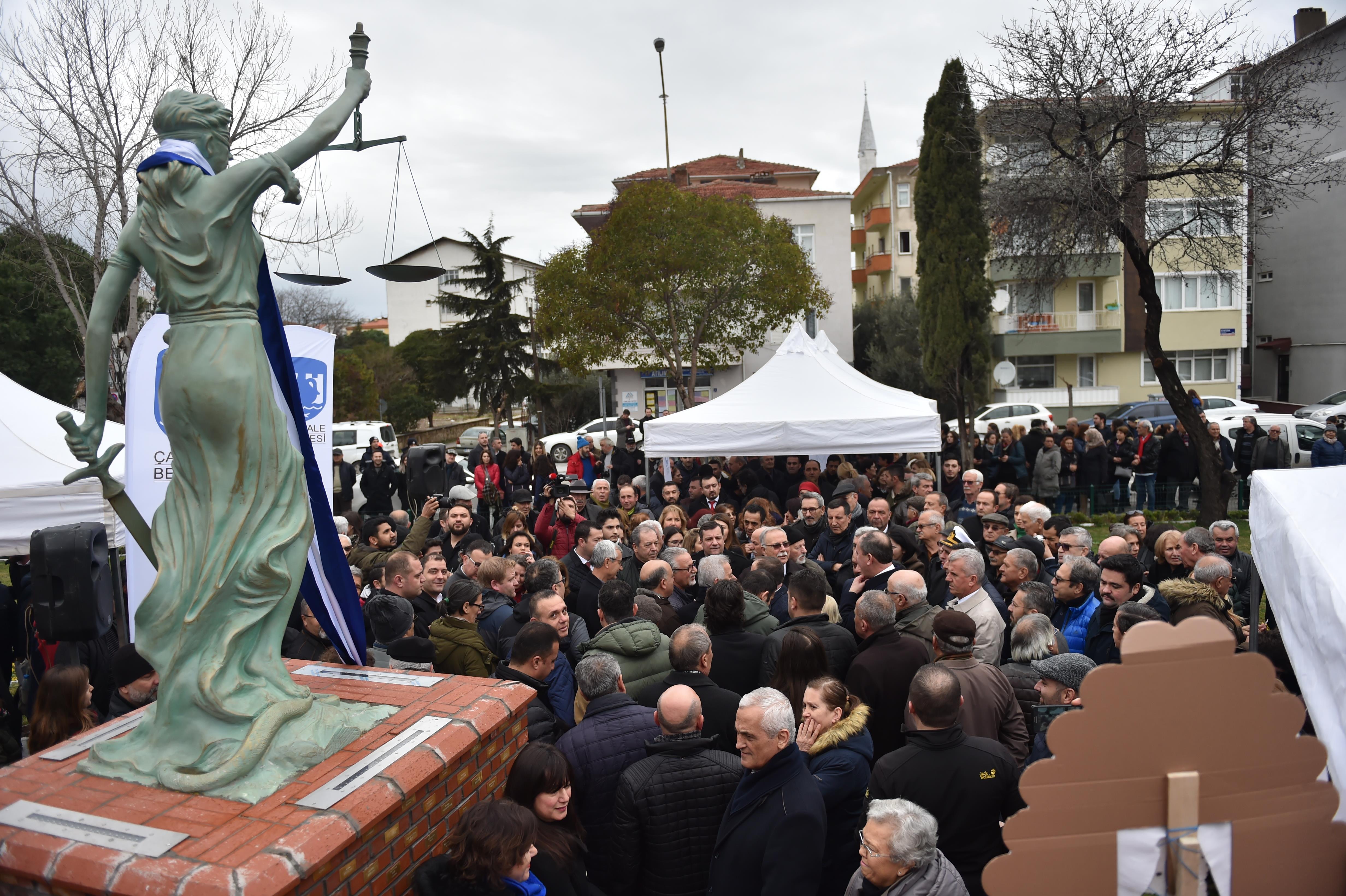 Başkan Gökhan'ın ardından söz alan CHP Çanakkale Milletvekili Özgür Ceylan ile CHP Genel Başkan Yardımcısı ve Çanakkale Milletvekili Av. Muharrem Erkek, meydanın ve heykelin yapımında emeği geçenlere teşekkür etti. Konuşmaların ardından Başkan Gökhan ve protokol üyeleri kurdele kesimi ile Adalet Meydanı ve Heykeli'nin açılışını gerçekleştirdi.