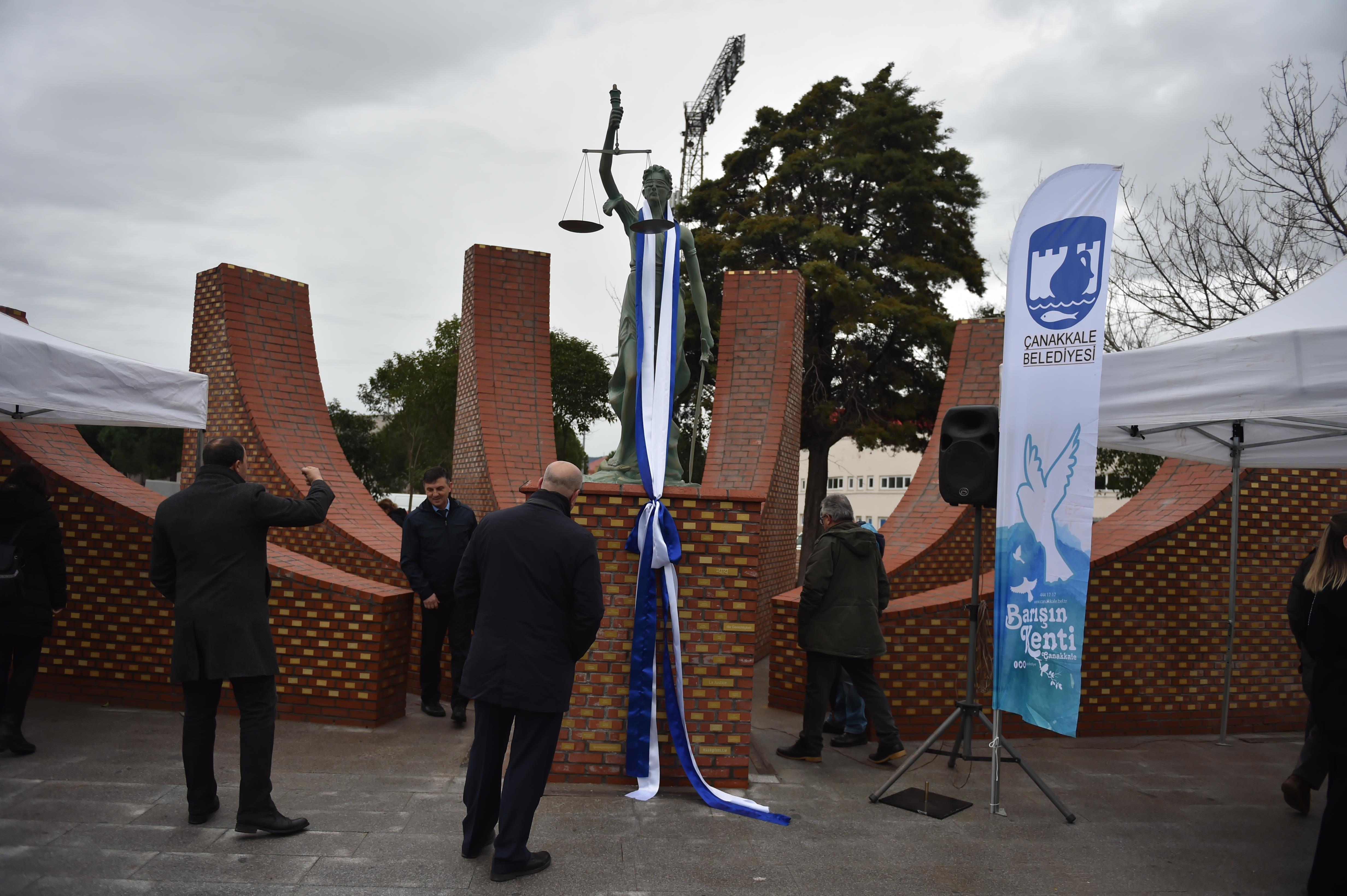 18 Mart Stadyumunun hemen yanında yer alan ve halk arasında ‘üçgen park' olarak bilinen alanda düzenleme ve peyzaj çalışmaları tamamlanan Adalet Meydanı ve Adalet Heykeli 24 Ocak 2019 Perşembe günü düzenlenen törenle açıldı.