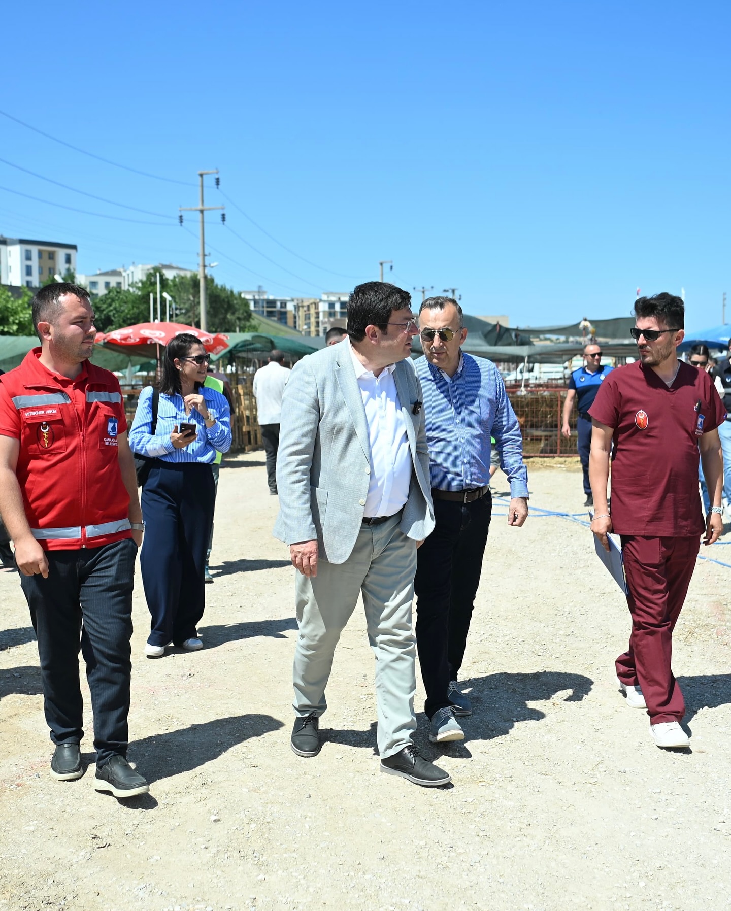 Belediye Başkanı Muharrem Erkek, Kurban Bayramı öncesinde Arife Pazarı ile Kurban Satış ve Kesim Alanını ziyaret etti.