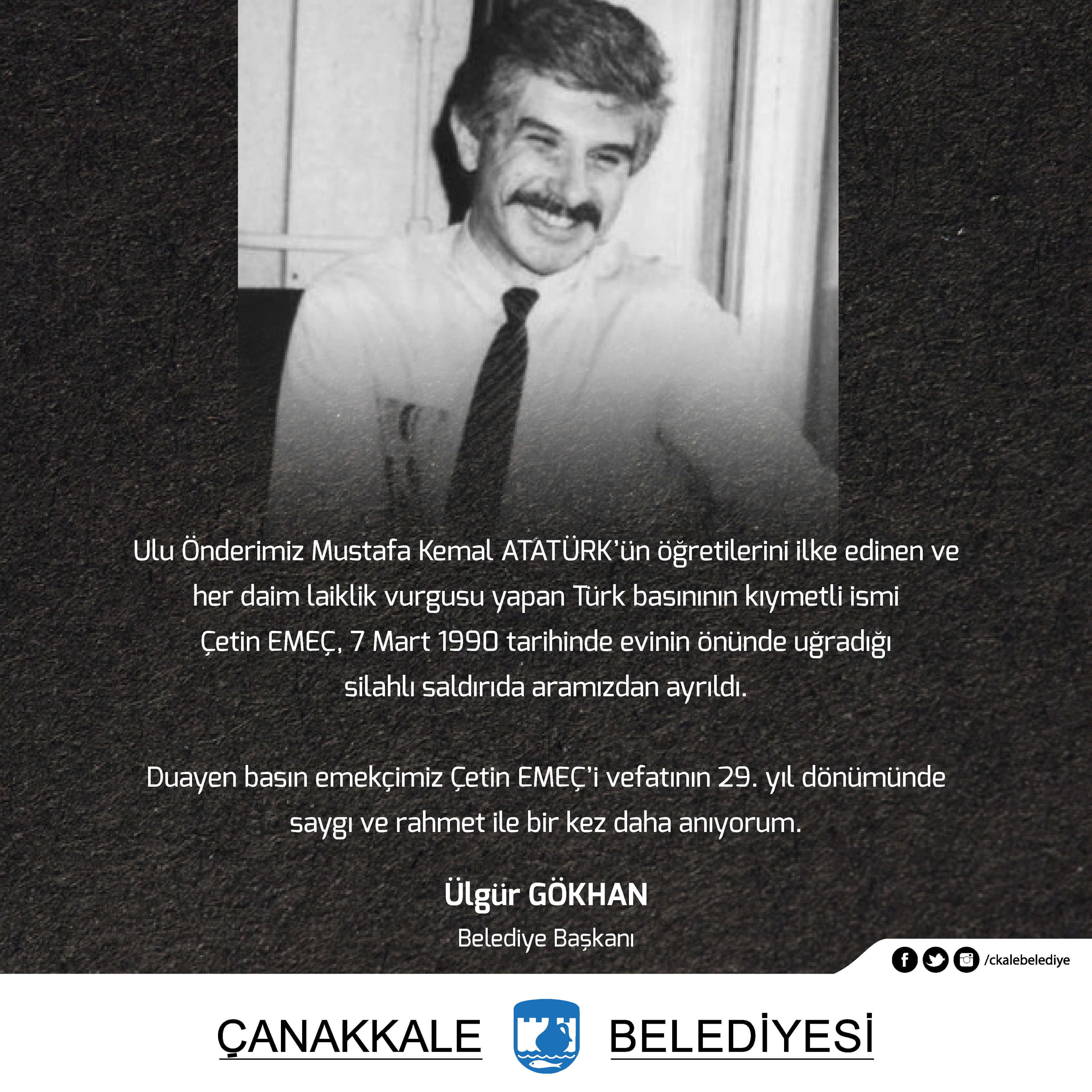 Belediye Başkanı Sayın Ülgür Gökhan'ın Çetin Emeç'i Anma Mesajı...