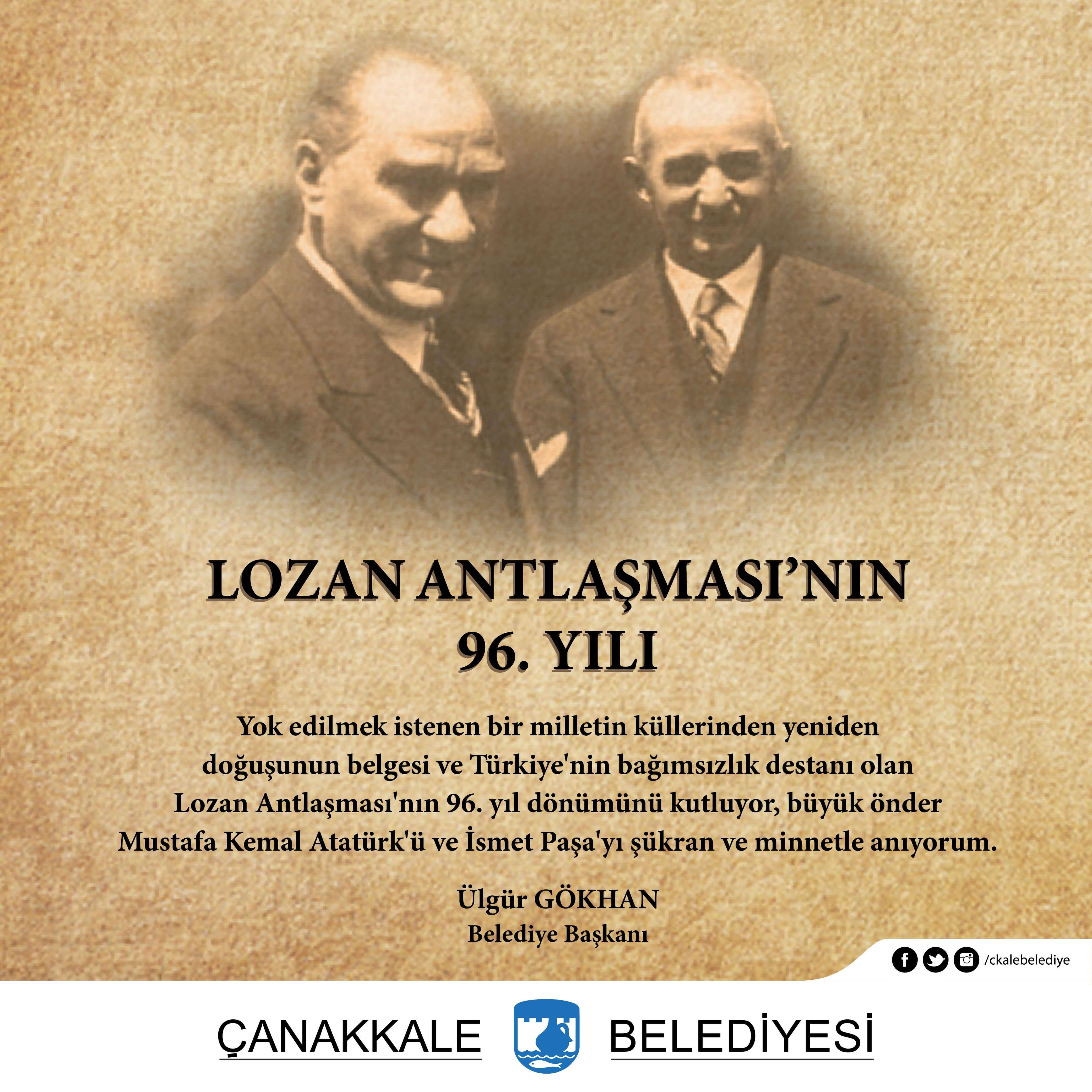 Yok edilmek istenen bir milletin küllerinden yeniden doğuşunun belgesi ve Türkiye'nin bağımsızlık destanı olan Lozan Antlaşması'nın 96. yıl dönümünü kutluyor, büyük önder Mustafa Kemal Atatürk'ü ve İsmet Paşa'yı şükran ve minnetle anıyorum.