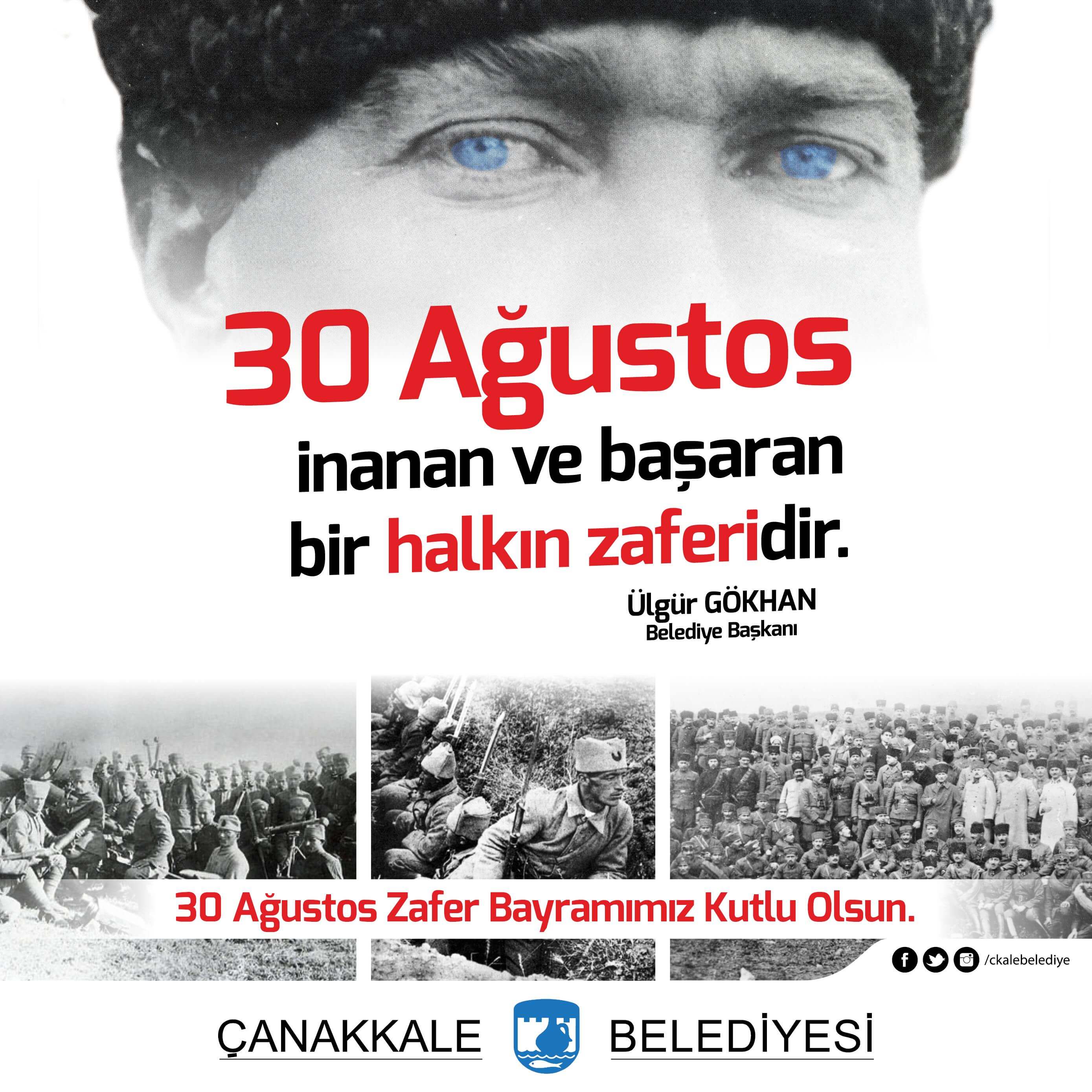 Bağımsızlık, barış, kardeşlik ve huzurun hakim olduğu bir ülke için ağır şartlar altında verilen tarihi mücadelenin baş kahramanları olan Ulu Önderimiz Mustafa Kemal Atatürk ve kahraman askerlerimizi rahmet ve saygıyla anıyor, ülkemizden barışın, birlik ve beraberliğin eksik olmaması temennilerimle 30 Ağustos Zafer Bayramımızı kutluyorum.