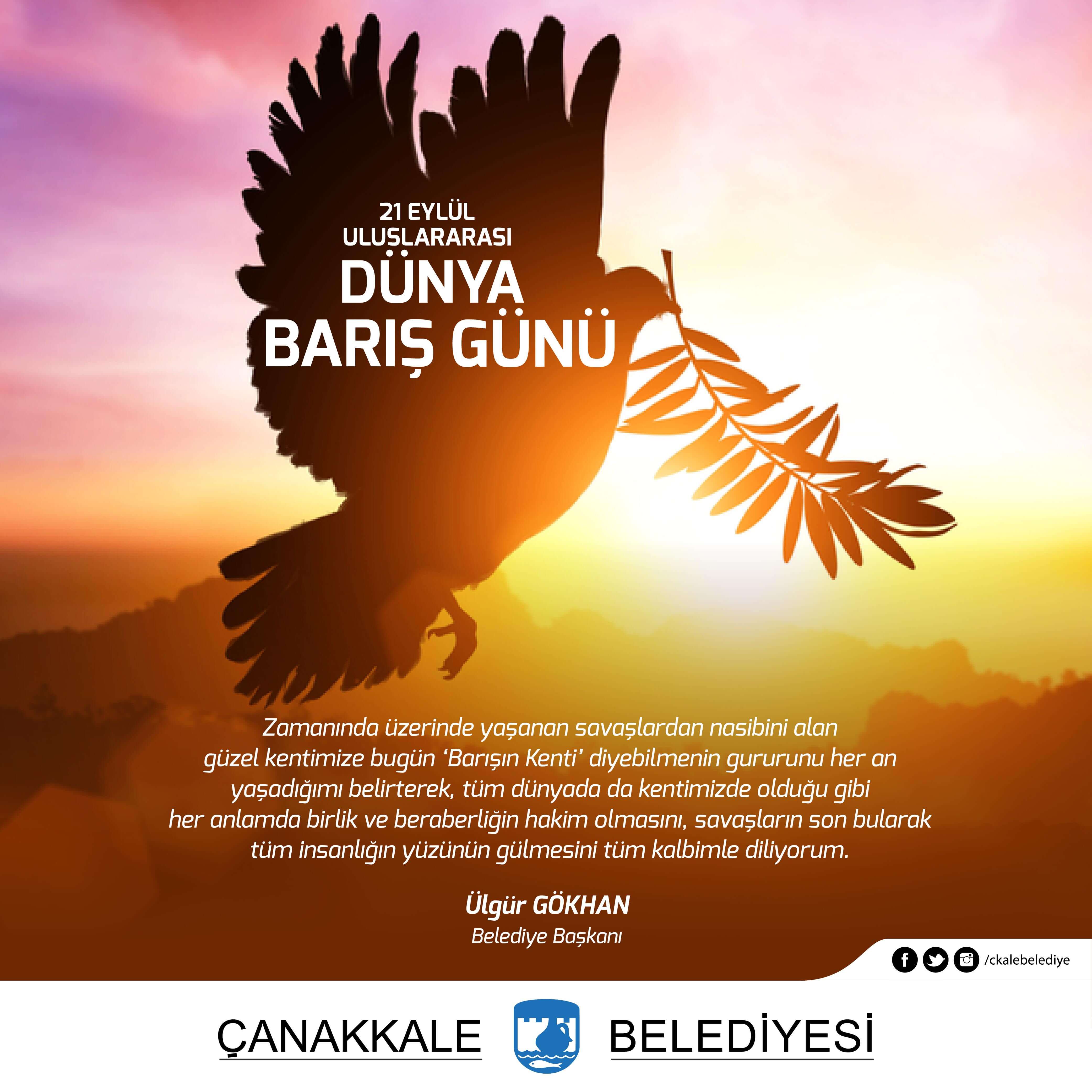 Belediye Başkanı Sayın Ülgür Gökhan'ın 21 Eylül Uluslararası Dünya Barış Günü Mesajı