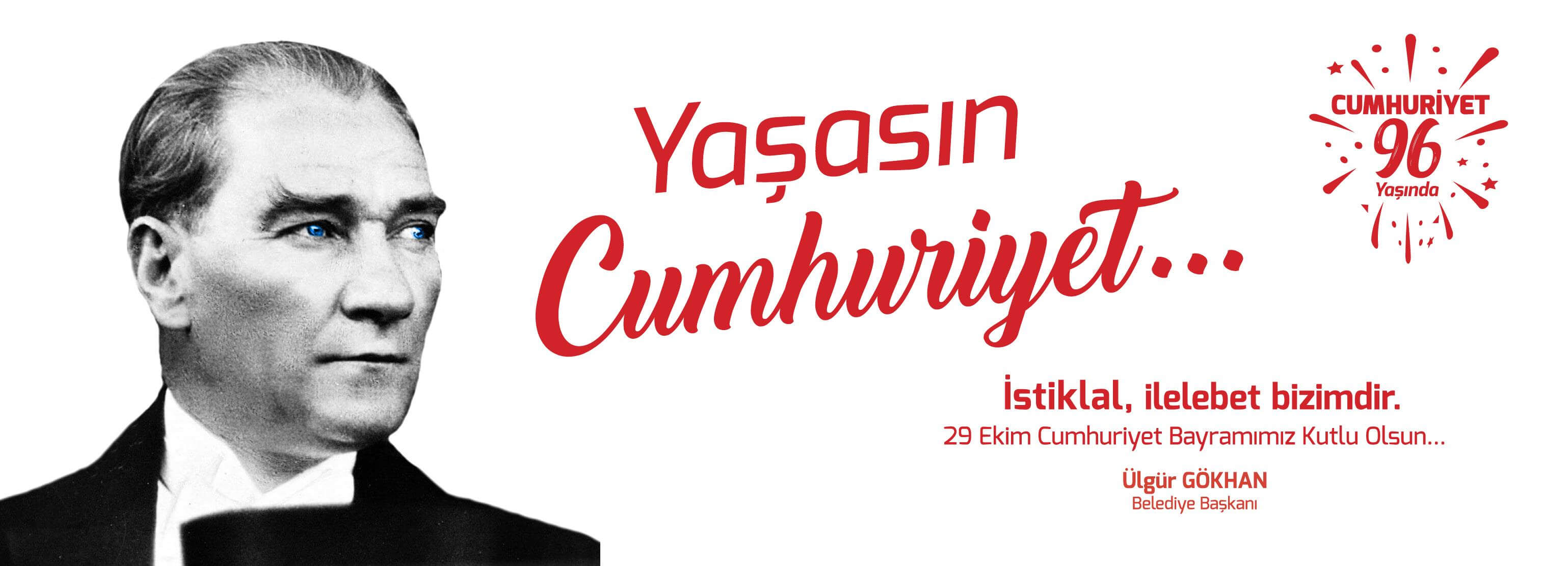 Bu duygu ve düşüncelerle ilkelerinden asla şaşmayacağımız, eşsiz bir miras olarak aldığımız ve çocuklarımıza emanet edeceğimiz Cumhuriyet’imizin 96. Yıldönümünü kutluyor; devrimleri ve dehası ile bize bu ufku açan büyük önderimiz Mustafa Kemal Atatürk başta olmak üzere, Cumhuriyet’in tesisi ve ilerlemesinde emeği bulunan herkese sonsuz şükranlarımı sunuyorum.