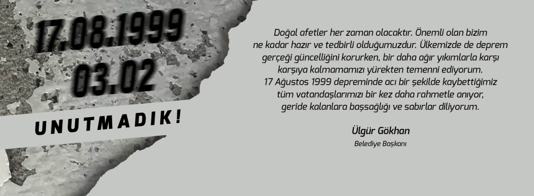 Belediye Başkanı Sayın Ülgür Gökhan'ın 17 Ağustos 1999 Depremi Anma Mesajı