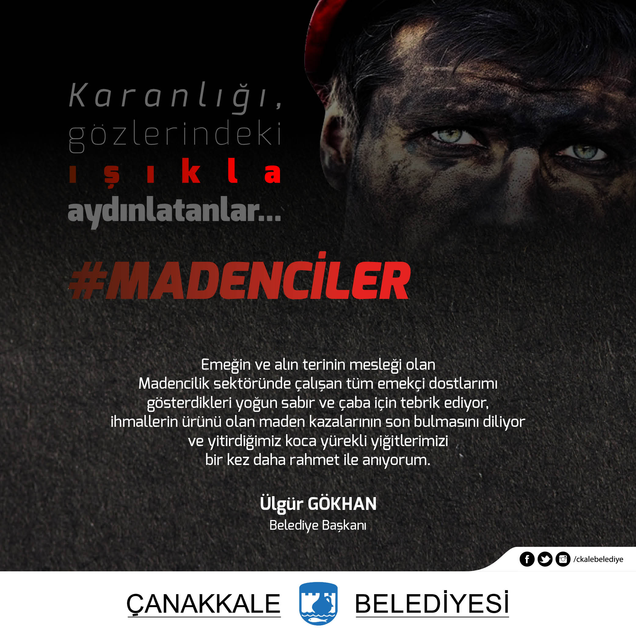 Emeğin ve alın terinin mesleği olan Madencilik sektöründe çalışan tüm emekçi dostlarımı gösterdikleri yoğun sabır ve çaba için tebrik ediyor, ihmallerin ürünü olan maden kazalarının son bulmasını diliyor ve yitirdiğimiz koca yürekli yiğitlerimizi bir kez daha rahmet ile anıyorum.