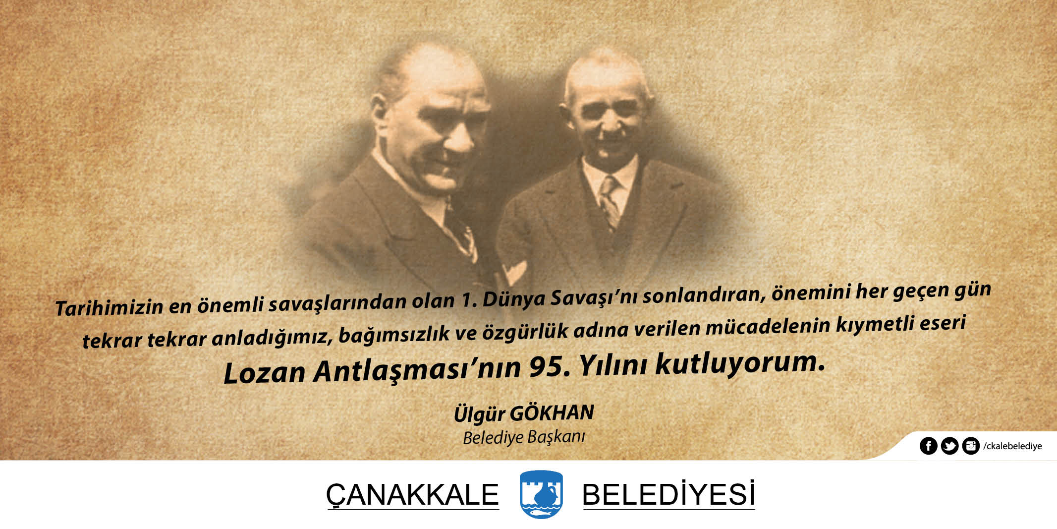 Tarihimizin en önemli savaşlarından olan 1. Dünya Savaşı’nı sonlandıran, önemini her geçen gün tekrar tekrar anladığımız, bağımsızlık ve özgürlük adına verilen mücadelenin kıymetli eseri Lozan Antlaşması’nın 95. yılını kutluyorum.
