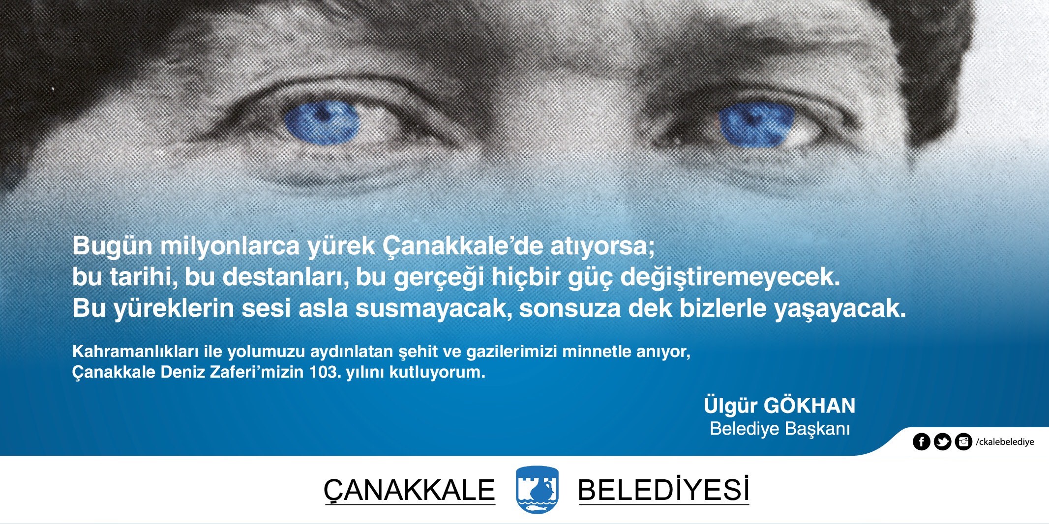 Bu önemli günde bağımsız, özgür ve laik bir ülkeyi bizlere miras bırakan Ulu Önderimiz Mustafa Kemal ATATÜRK’ ü ve geleceğimizin kurucuları aziz şehitlerimizi rahmetle, gazilerimizi minnetle anıyor, büyük bedeller ödenerek, Cumhuriyete önsöz olmuş Çanakkale’den kıymetli hatıraları önünde saygıyla eğiliyorum.