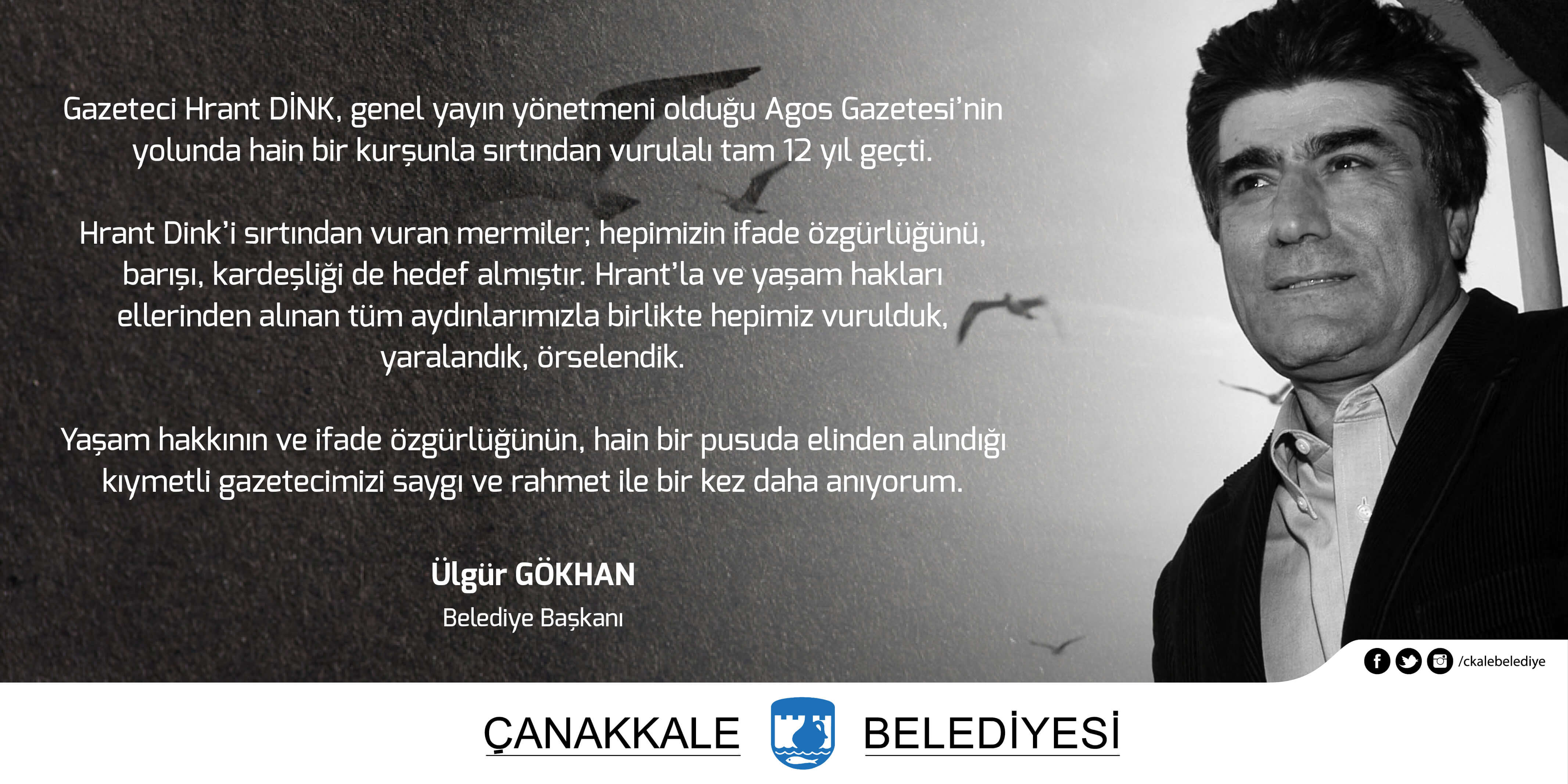 Gazeteci Hrant DİNK, genel yayın yönetmeni olduğu Agos Gazetesi'nin yolunda hain bir kurşunla sırtından vurulalı tam 12 yıl geçti.